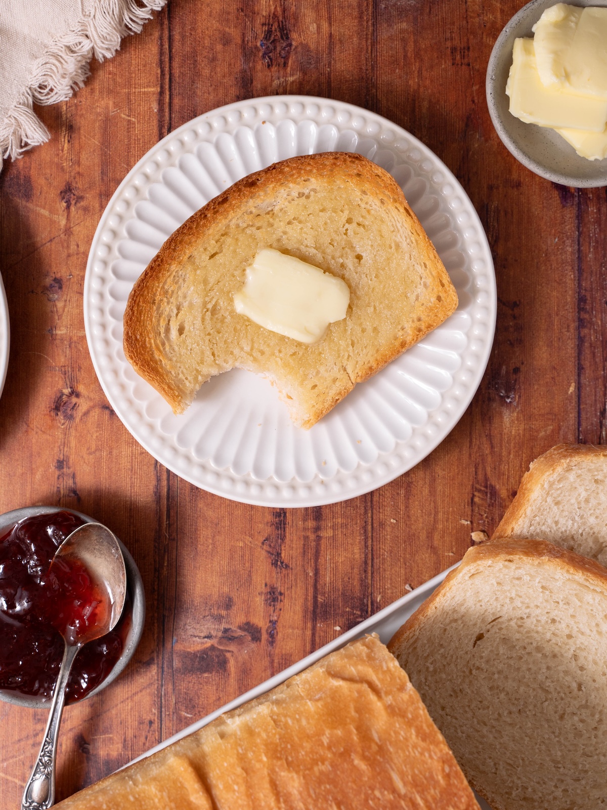 😋 Flavor notes: Butter, milk, sourdough tang. Pairs well with: Butter, jam, cheese, breakfast, just about any sandwich toppings.